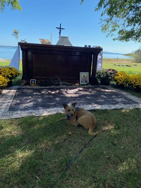 We brought the Altar to the riverside and built a temporary chapel decorated with rocks, shells, branches, pinecones, Chrysanthemums, deer antlers, and crab shells. Our mothers read from the “Canticle of the Sun”, and we all prayed together, celebrating the Eucharist and watching the river life of our Lord’s Creation dazzle us with Peace. We shared several meals, including a crab cake feast like only these rivers and the Chesapeake Bay can provide through the Grace of God.